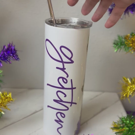 A must have for the parade route! A 20 oz personalized geode Mardi Gras Tumbler. Pour your Daiquiri in and enjoy all day or night.