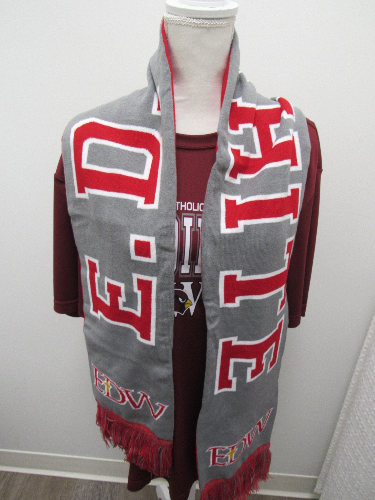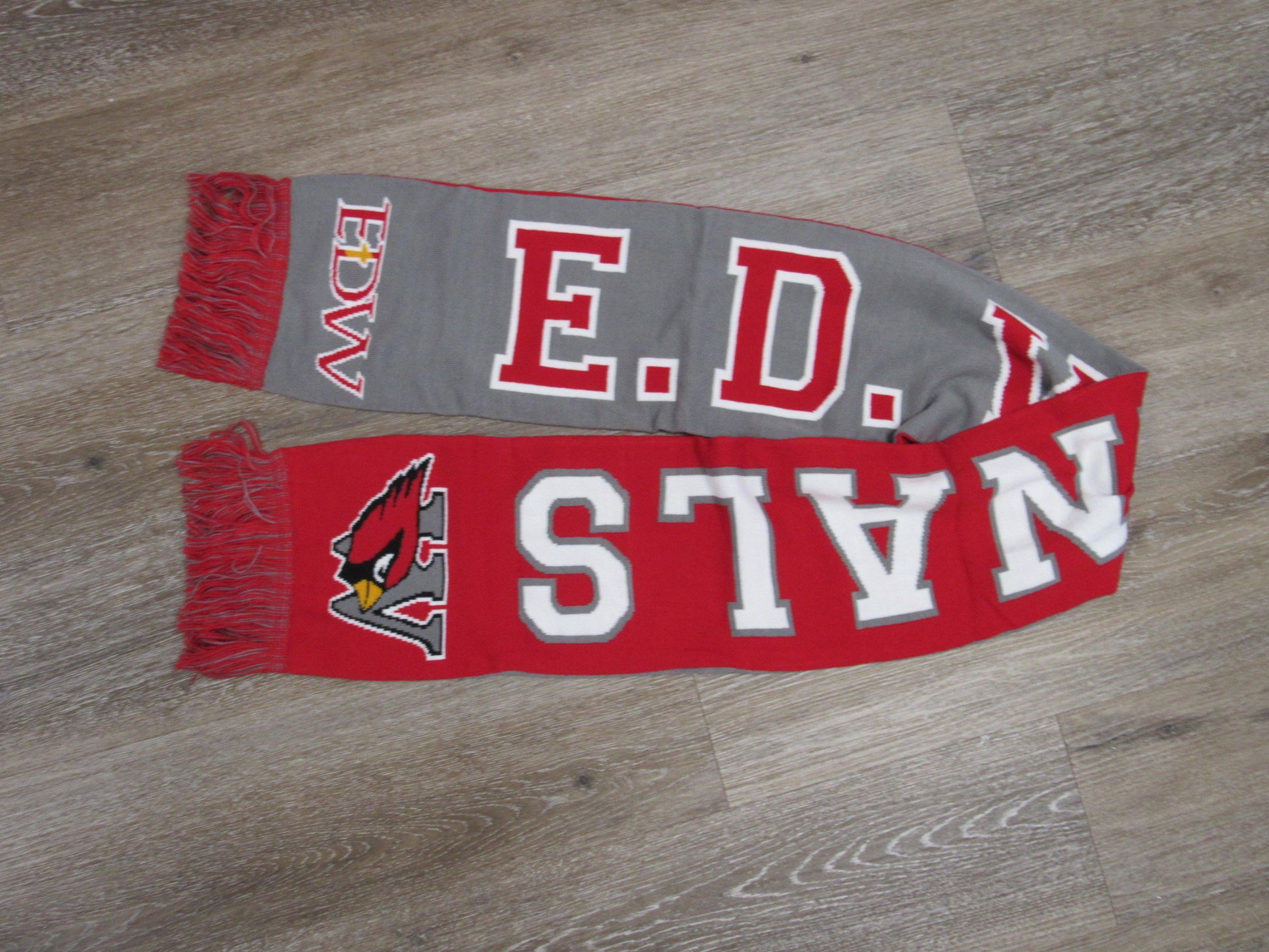 Wrap yourself in school spirit with the EDW Reversible Knit Scarf With Fringe! This cozy, reversible scarf lets you show off cardinal pride from both sides, perfect for chilly game days or casual outings. The playful fringe adds a fun, stylish touch while keeping you warm and comfy all season long. Whether cheering from the stands or hitting the town, this scarf is your go-to accessory for spirited, double-sided warmth.