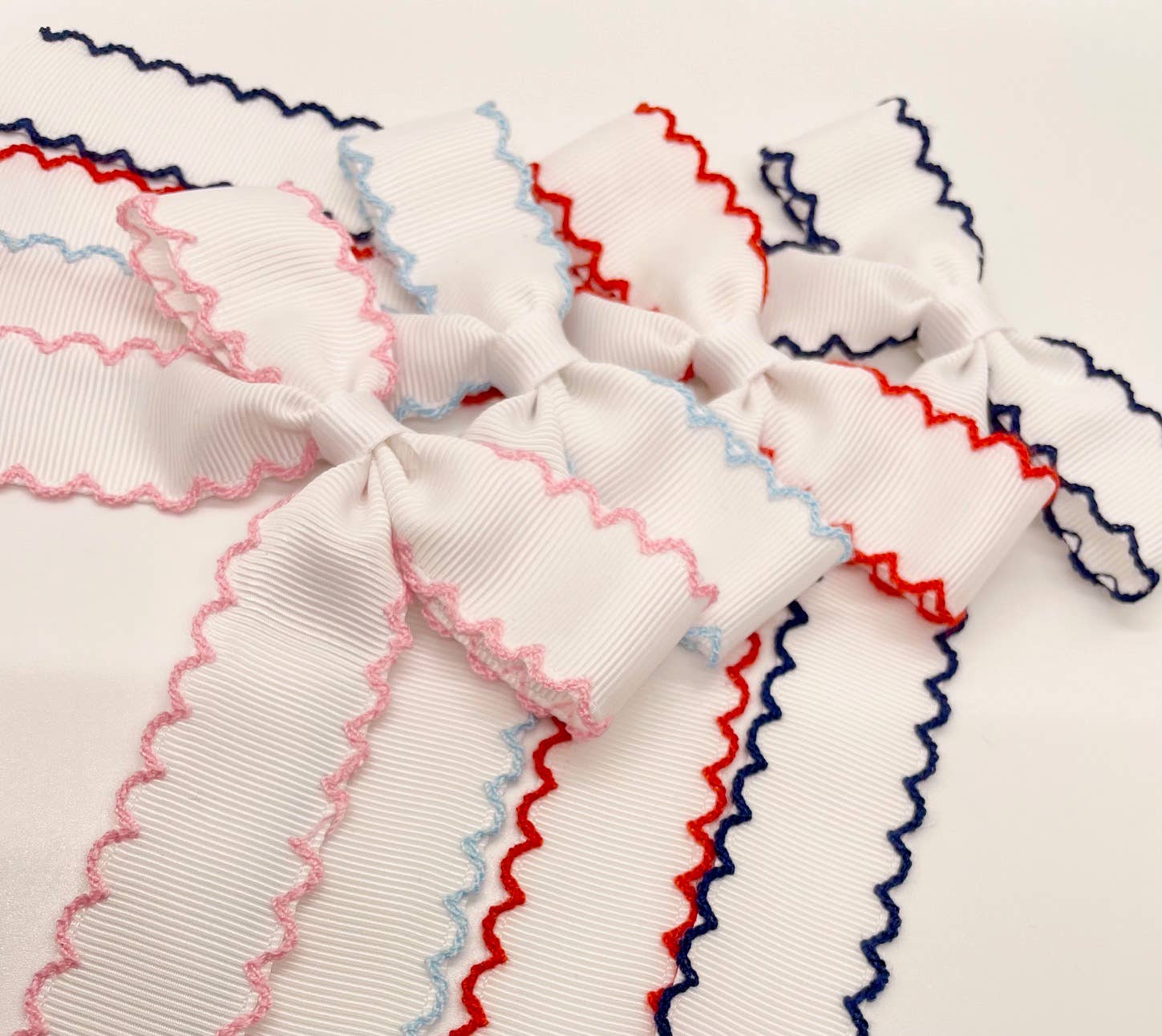 The medium size bow is about 4.5 inches wide, about 8 inches long and the ribbon is 1.5 inches wide.