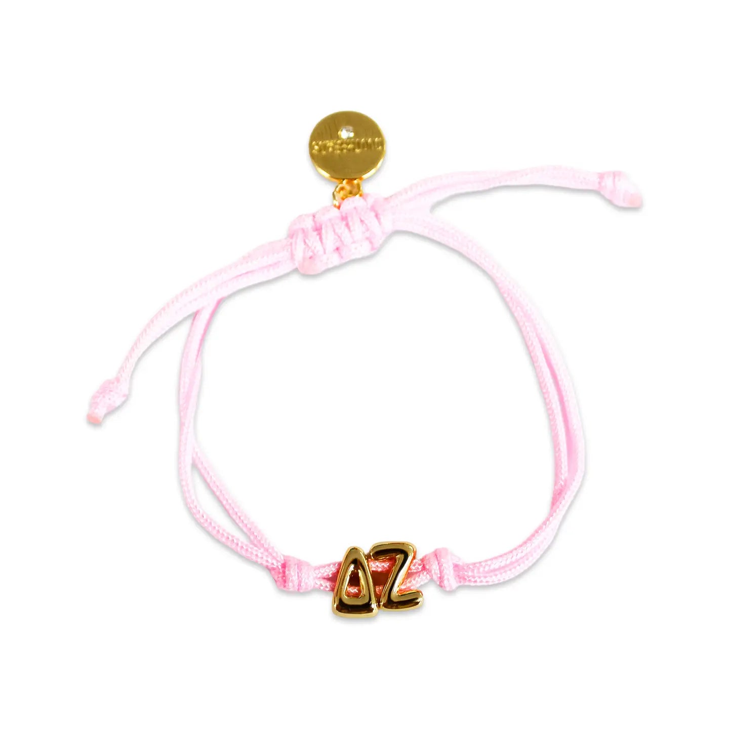 This Sorority Cord Bracelet adds the prettiest pop of subtle color to any bracelet stack. Miniature, gold, water-resistant letters are strung on a comfortable pull-tie cord.