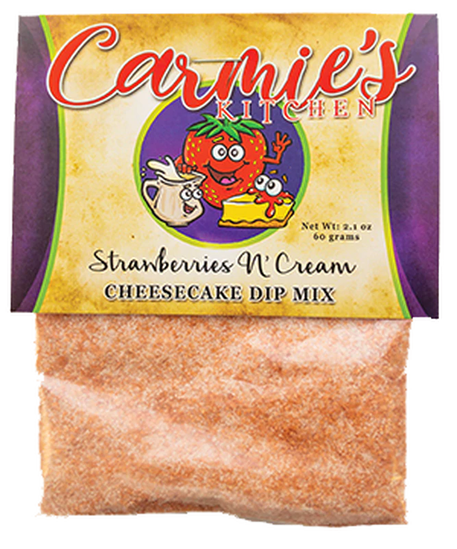 Ripe strawberry flavor with real strawberry pieces, this is a delicious treat! Classic cheesecake flavor made with natural strawberry flavor. Just add a few simple ingredients to make this cheesecake dip mix into a cheesecake dip, pie, or traditional cheesecake. It is all-natural and contains no MSG or preservatives. Prepare by using cream cheese and Cool Whip to make a fruit dip. Or make a cheesecake filling with 2 packets! Carmie's dip mixes make the perfect stocking stuffer, hostess gift, holiday gift, or holiday party addition!